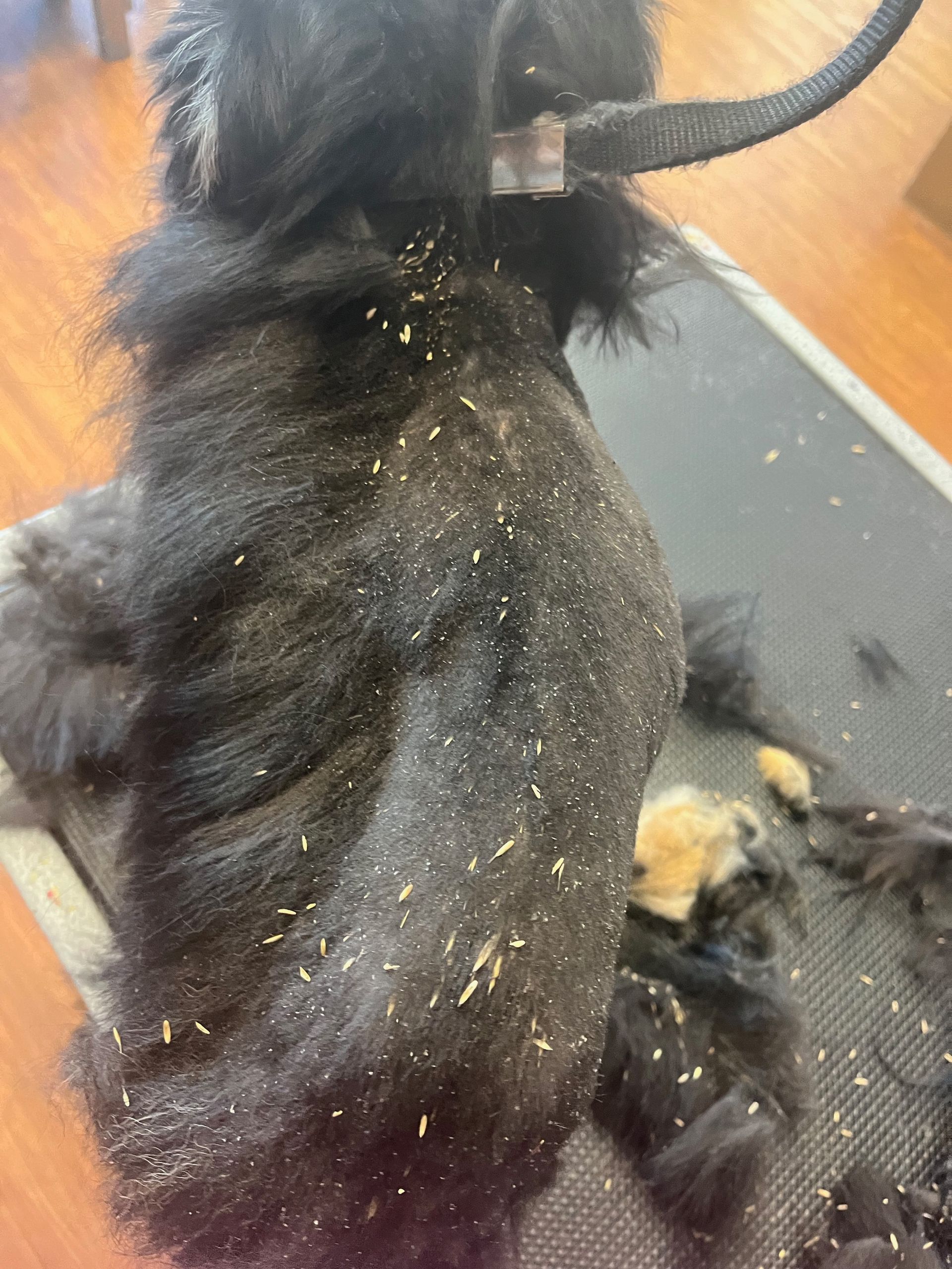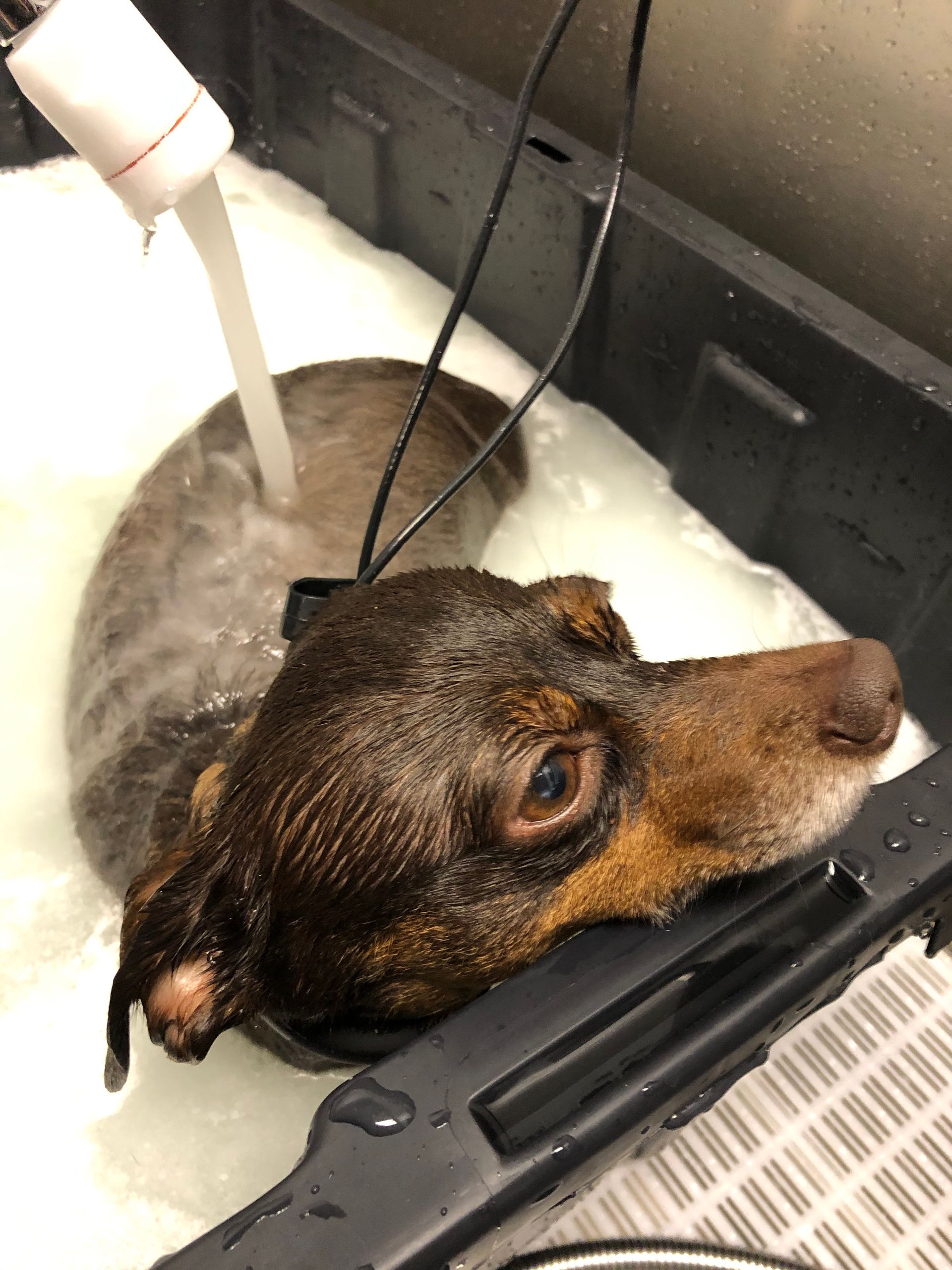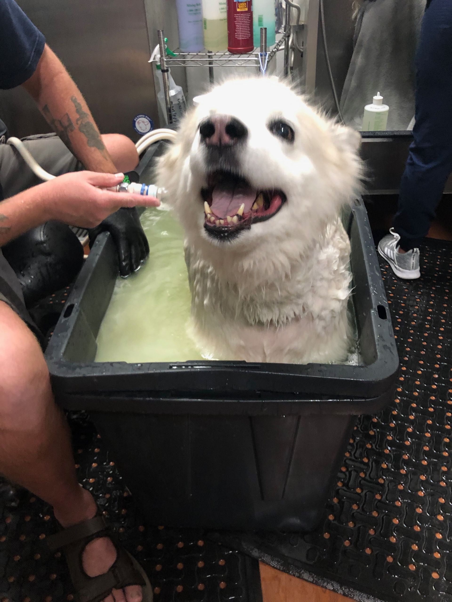 We are retired military, so we named him Tango since we all had already deemed him a tourist. I took him to the shop that morning to get him cleaned up. He was a very sweet dog but in a lot of discomfort.